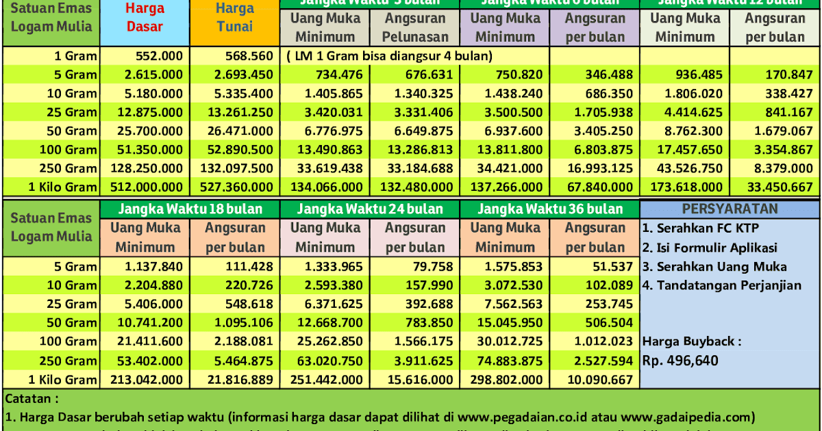 Marhun bih diterima oleh nasabah tunai atau ditransfer Keunggulan layanan kca tersedia lebih dari 4400 outlet pegadaian di seluruh indonesia. Sisa saldo emas minimal adalah 0,1 gram setelah buyback agar rekening tabungan emas kamu tetap aktif. Untuk mendapatkan kredit nasabah hanya perlu membawa agunan berupa perhiasan emas, emas batangan, mobil, sepeda motor, laptop, handphone, dan barang elektronik lainnya. Siapkan syarat dan ketentuan yang diperlukan dalam pengajuan gadai emas syariah.